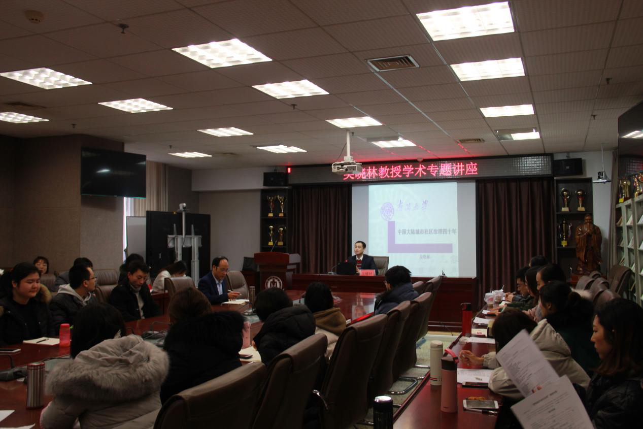 1月12日上午,应51视频 邀请,南开大学周恩来政府管理学院博士生导师,复旦大学大都市治理研究中心特聘研究员,剑桥大学《Journal of Cambridge China Studies》编委,中国应急管理学会会员吴晓林教授于JC909为51视频 做题为《改革开放以来城市社区治理的变迁》的学术报告。报告由51视频 院长助理李增元主持,51视频 全日制MPA研究生及政治学理论专业研究生积极参加报告。
