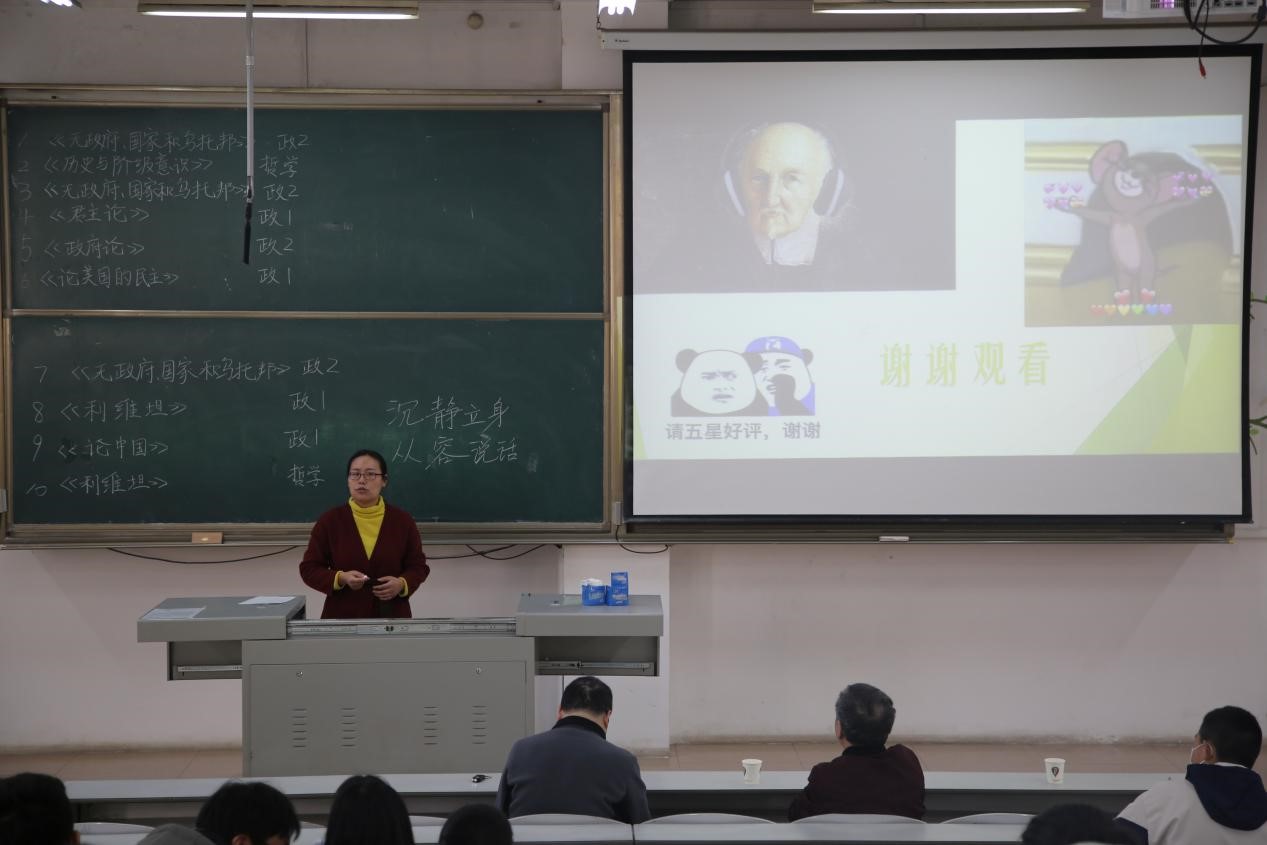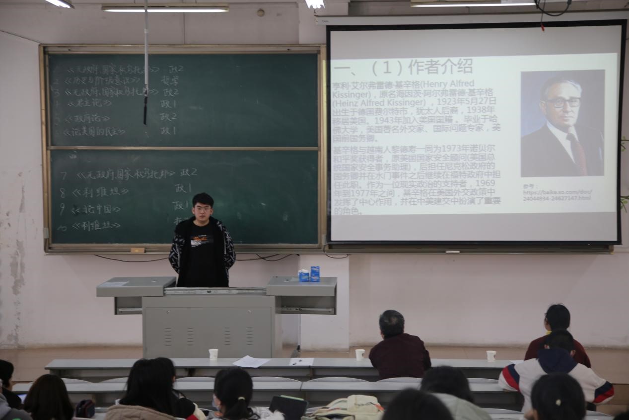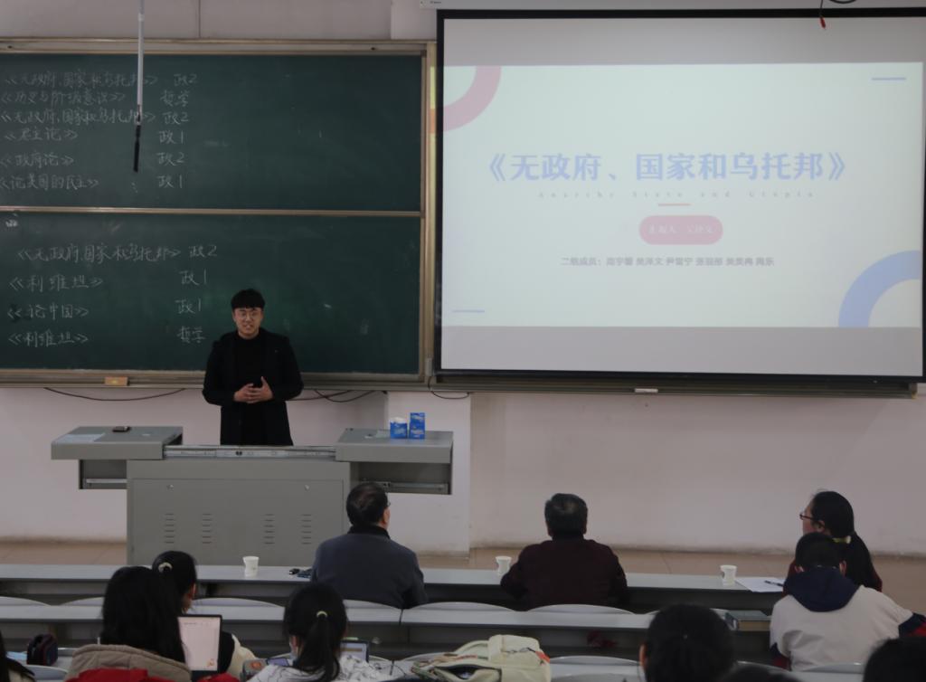 比赛伊始,学习部代表讲述阅读经典著作的重要意义并预祝同学们取得良好成绩。本次比赛共有十组同学展示读书成果,主要涉及《无政府、国家和乌托邦》、《历史与阶级意识》、《利维坦》等书目。同学们通过演讲精心准备的幻灯片来讲述自身读书见解,从作者简介、内容梳理与分享、理论联系实际的现实观点等多方面进行全面剖析。