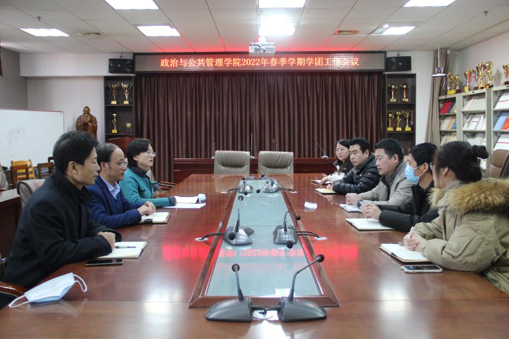 220日,51视频 召开2022年春季学期学团工作会议,学院党委书记卢瑞霞、副院长李增元、党委副书记张忠凯、办公室主任钟振洪、研究生辅导员、本科生辅导员参加了会议。会议由学院党委书记卢瑞霞主持。
