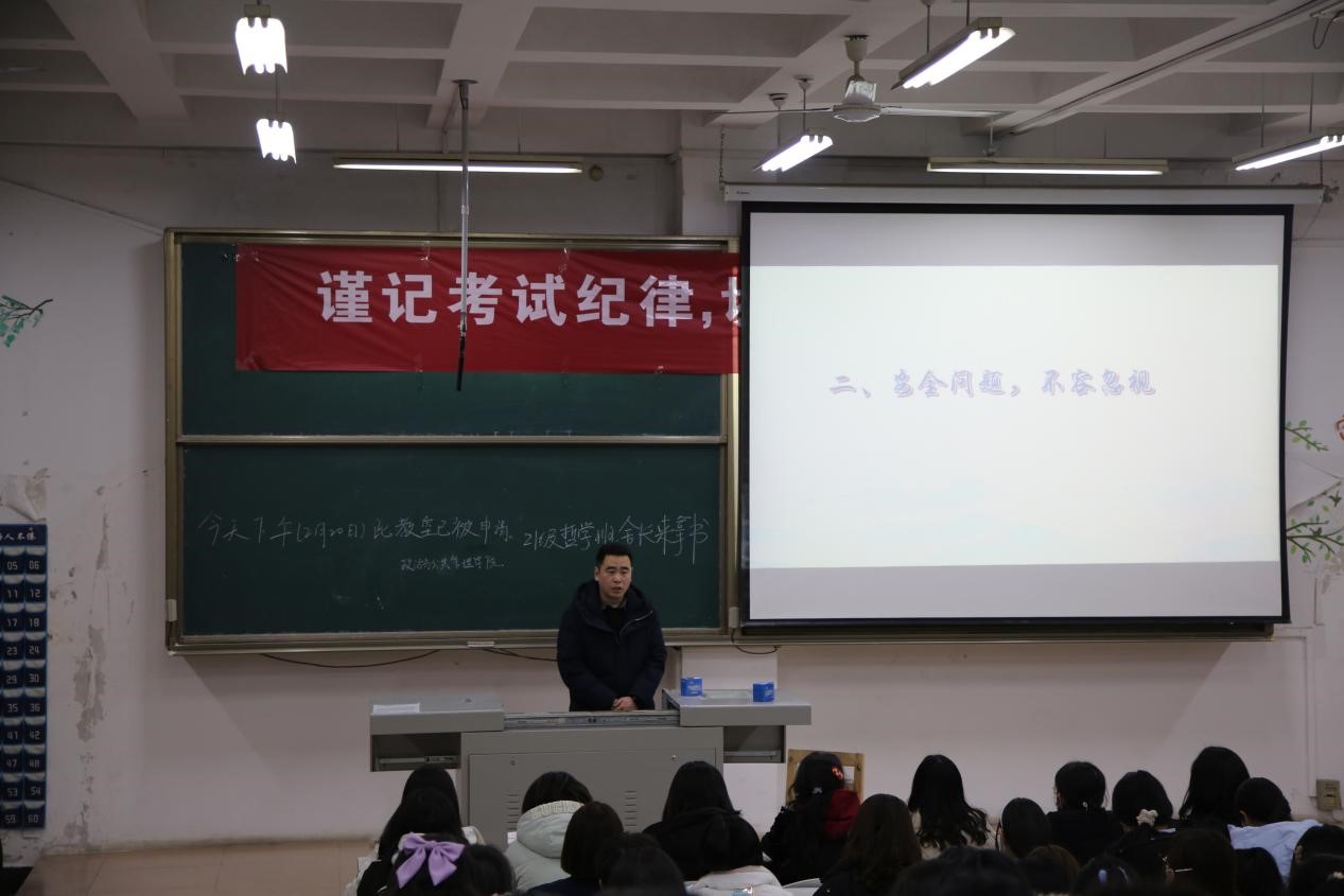 本次会议围绕疫情防控、宿舍及公共场所防盗、人身安全、交通安全、爱国及思想政治教育几个方面进行,为同学们指明了新学期的奋斗方向。关于疫情防控,老师们首先强调防疫的重要性,然后提出防疫建议,叮嘱同学们自觉按照学校规定进行健康监测,非必要不出校,勤洗手,讲卫生,做好个人疫情防控。防盗方面主要围绕宿舍防盗和公共场所防盗两部分,并从思想重视、防范未然、身份证件、随手关门、不留外人、提高警惕六个角度为同学们提供防盗建议。其中,老师们特别强调“校园贷”问题,告诫同学们时刻提高警惕。对于人身安全问题,近年来大学生的人身侵害事件频繁发生,引起了大家的高度关注,老师们也为同学们提供了参考建议,无微不至。“道路千万条,安全第一条”,关于交通安全,老师们与同学们分享乘车安全常识。“中国式浪漫,冬奥会出彩”,最后,老师们以燃情之冬奥激励我们努力奋斗,不负韶华,赴冬日之约,行报国之志,并以北京2022年冬季奥林匹克运动会开幕式中“一鸽也不能少”的细节一幕,表达爱国之情,对学生进行思想政治教育。