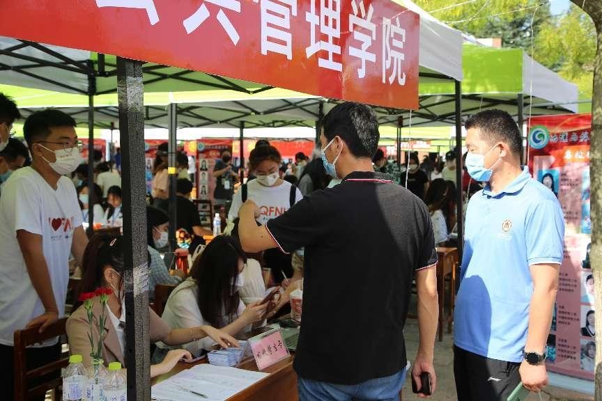 党委副书记张忠凯,团委书记、2021级辅导员马腾,2020级辅导员耿晓敏,2022级辅导员王元如,及校领导莅临现场指导迎新工作,2020级和2021级的同学以朋辈引领方式助力新生完成报到手续。