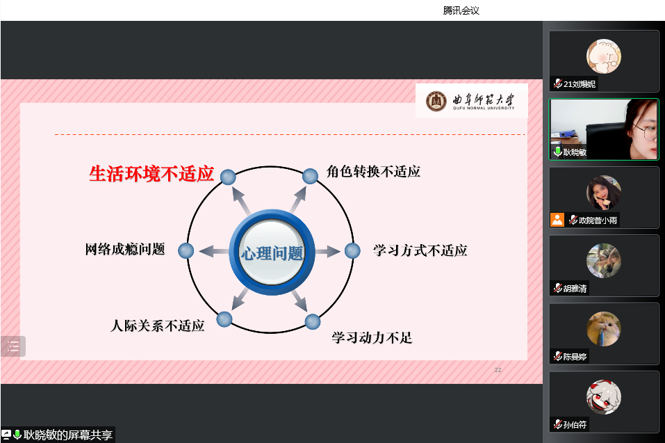 对202级新生进行心理健康教育,2020级辅导员耿晓敏主讲,2022级新生积极与会。