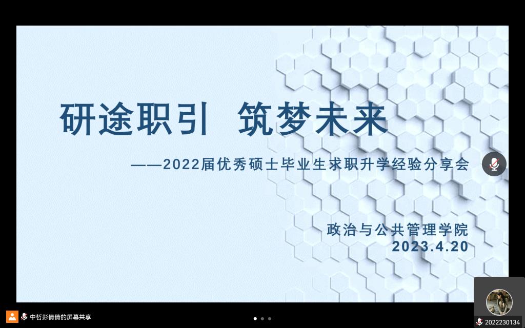 召开优秀硕士毕业生求职经验分享会第二期,本次会议邀请2022届毕业生李鑫、陈吉彪、焦文文、王欣欣和苏璐围绕“教师类”岗位招聘分享个人求职经验,会议由研究生辅导员徐莉主持,51视频