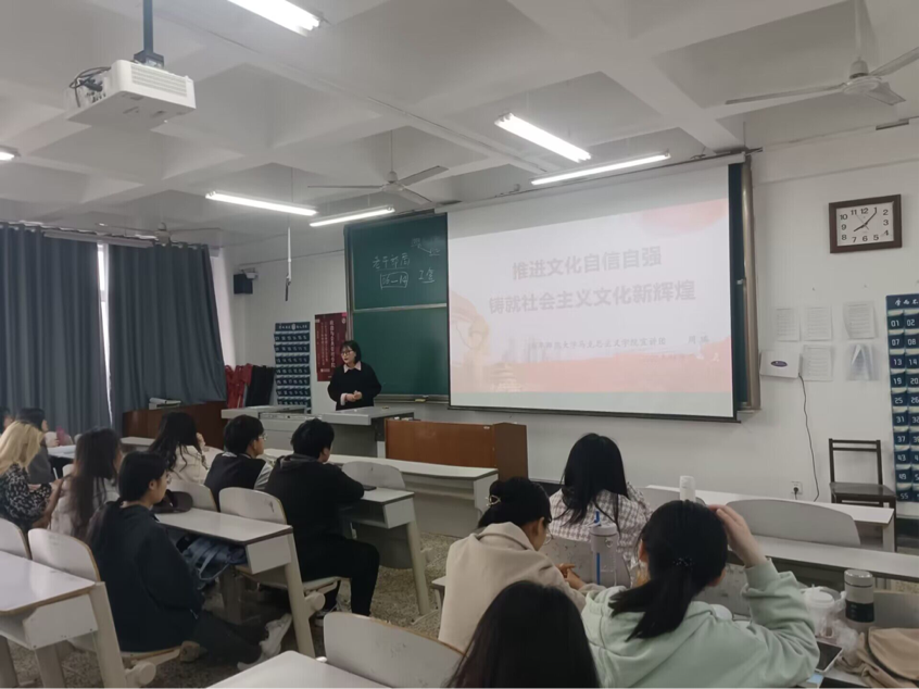 宣讲会上,马克思主义学院博士生裘志远指出,党的二十大是在全党全国各族人民迈上全面建设社会主义现代化国家新征程、向第二个百年奋斗目标进军的关键时刻召开的一次十分重要的大会。这次大会明确宣示了我们党在新时代新征程上举什么旗、走什么路、以什么样的精神状态、朝着什么样的目标继续前进等重大问题。研究生周璐向同学们说明,全面建设社会主义现代化国家的重要意义。必须坚持中国特色社会主义文化发展道路,增强文化自信,围绕举旗帜、聚民心、育新人、兴文化、展形象建设社会主义文化强国,发展面向现代化、面向世界、面向未来的,民族的科学的大众的社会主义文化,激发全民族文化创新创造活力,增强实现中华民族伟大复兴的精神力量。最后,22级马克思主义学院本科生孙雪茹则从科技发展的重要性出发,详细介绍科技创新赋能新时代发展的具体方式。
