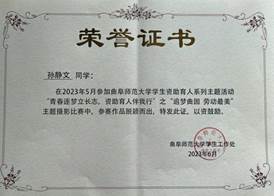 荣获“优秀组织单位”。王元如老师、耿晓敏老师荣获“优秀指导老师”。 朱晓凤同学荣获优秀朋辈导师,陈秀芹等四位同学在“感恩与心,励志于行”主题微视频活动中脱颖而出,获得荣誉证书。孙静文同学在“追梦曲园,劳动最美”主题摄影活动中脱颖而出,获得荣誉证书。姜美清等八名同学“爱心传递,朋辈导师”赋能训练营中,表现优异,获得优秀学员称号。此外,参加本次活动的九人获得结业证书。