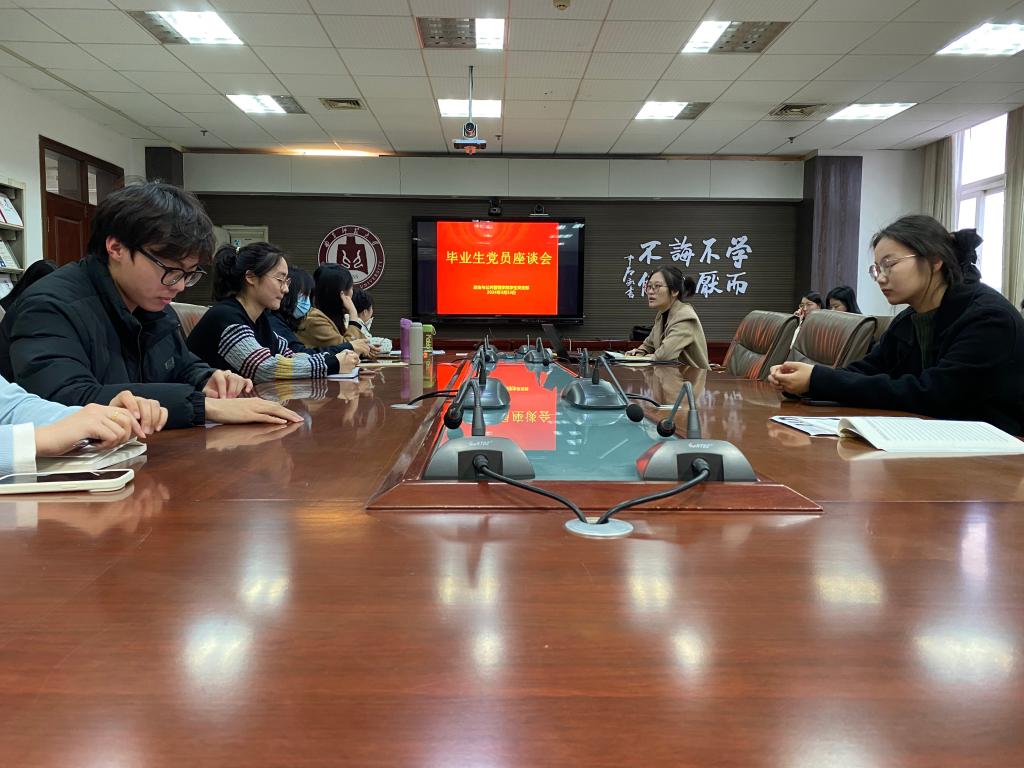 在JC909召开2024届毕业班党员座谈会。出席本次座谈会的有2020级毕业班辅导员耿晓敏,以及各专业毕业生党员。