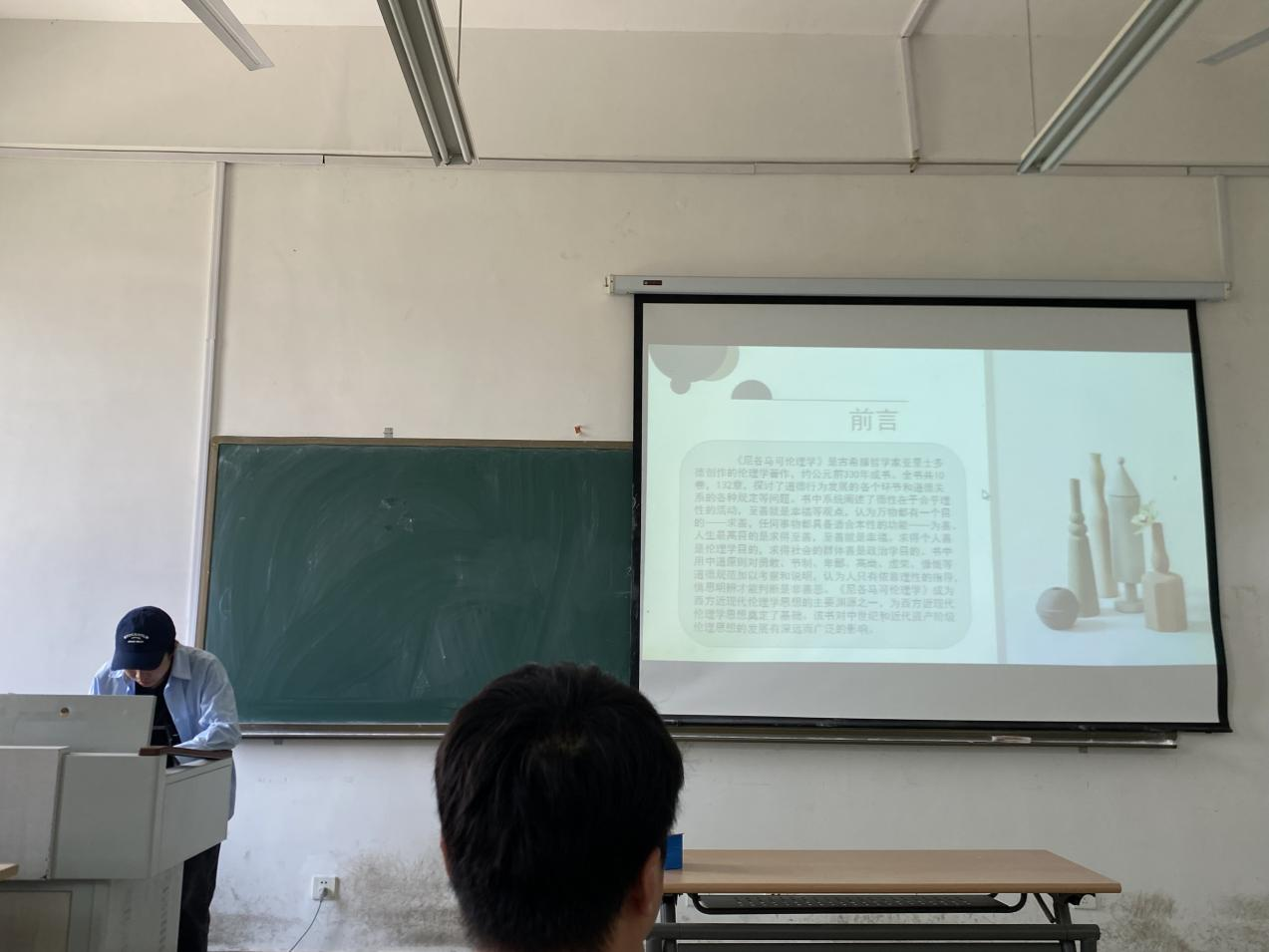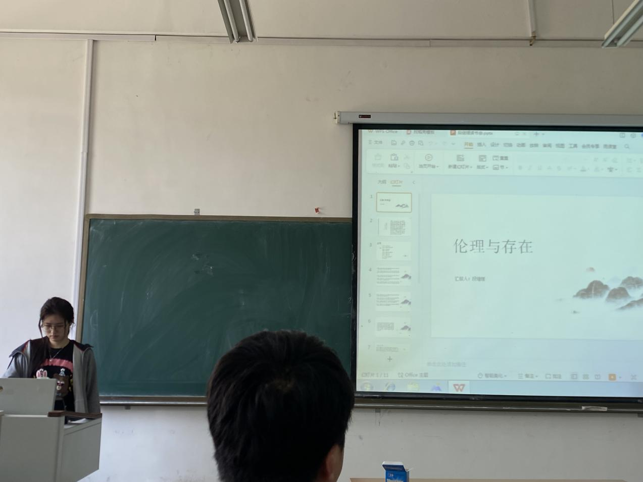 2023级段继媛同学从德性、知德、行德方面介绍了杨国荣教授的《伦理与存在》一书。随后她向大家提出问题:“为什么说道德对幸福有制约作用?”在场同学就此观点发表了自己的看法。