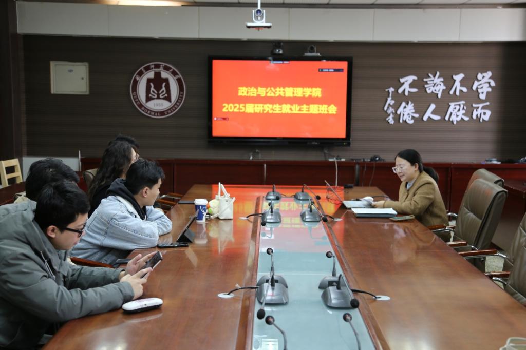 于C909会议室召开2025届研究生就业指导主题班会,2025届全体学术型研究生参会。