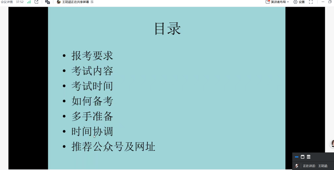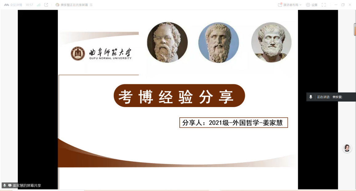 4月18日,龚子仪(升学于陕西师范大学)分别就报考院校、联系导师、招生信息解读等方面为大家详细介绍了自己的升学经验;薛原锦(就职于南阳工艺美术学院)从自我规划、前期准备和面试技巧三方面详细介绍了在求职和面试过程中的心得体会,鼓励大家勇于尝试、敢于探索;陈晨(就职于烟台市芝罘区委党校)着重从人才引进政策解读、心态调整、试讲准备等方面展开讲述;苗誉露(就职于莱西综合行政执法局政策法规服务中心)围绕个人定位、获取信息、面试技巧几个方面提出建议,鼓励同学们在求职中积极尝试。