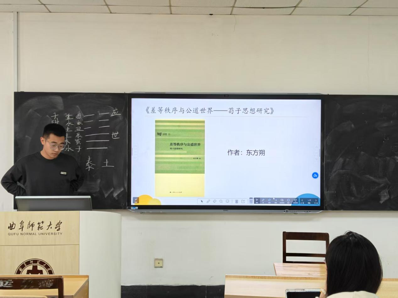 2024级刘毅伟同学分享的是《差等秩序与公道世界——荀子思想研究》一书,通过讲述荀子的相关思想并联系现实生活中的秩序以及等级差别,提出荀子“功利论”的刑罚观的相关问题。
