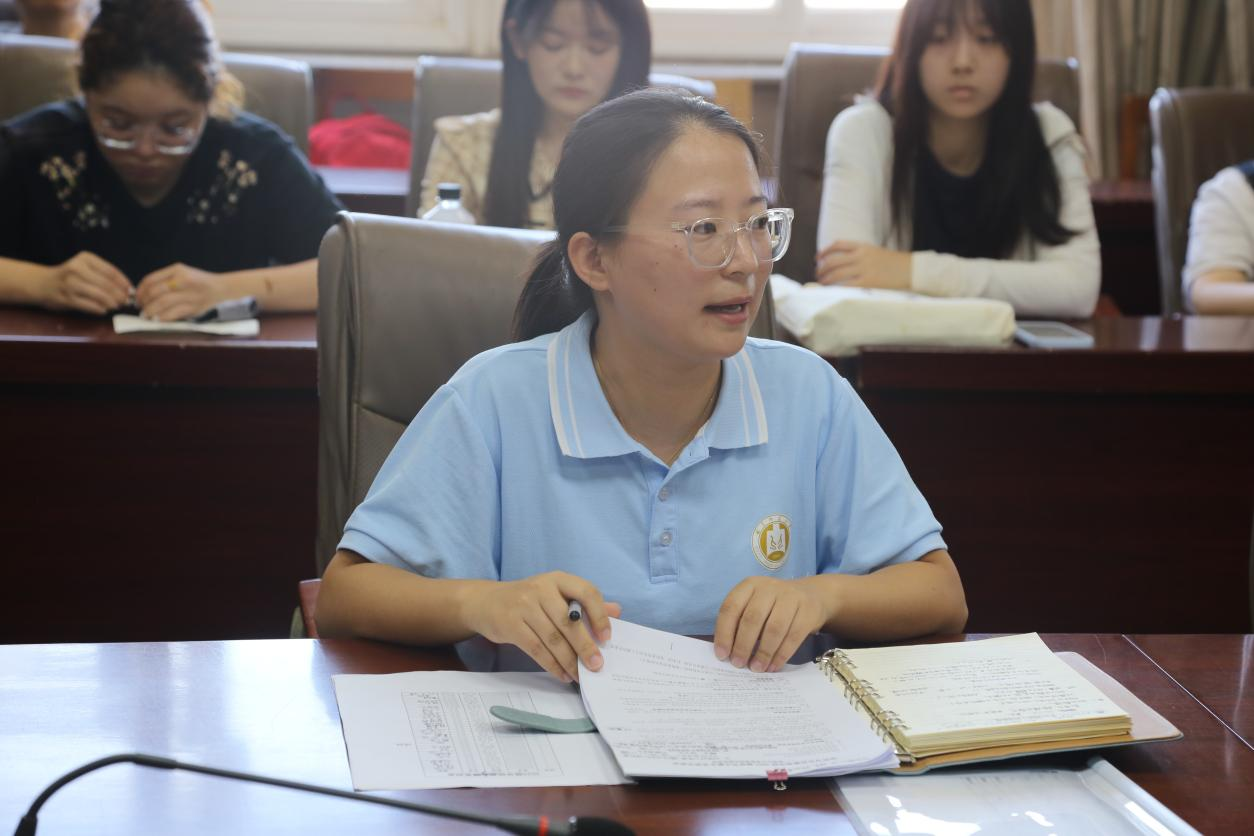 刘雪婷向同学们介绍了学院硕士研究生培养办法,从课程成绩、师生双选、学位论文开题、学位论文答辩、学位论文盲审等方面详细展开,提醒同学们认真了解并制定自己的学业规划,希望同学们明确学院要求,积极主动完成培养目标。