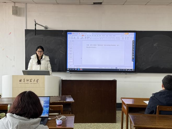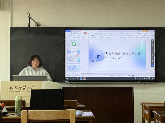 25级赵琦同学分享的书目是《西西弗神话》,她表明西西弗的幸福是荒诞哲学的范本,做到清醒认知、主动反抗、专注过程,即是对命运的主宰,因此我们要更加注重活在当下,并向同学们提出如何理解“西西弗是幸福”的问题,引发了同学们的深入思考。
