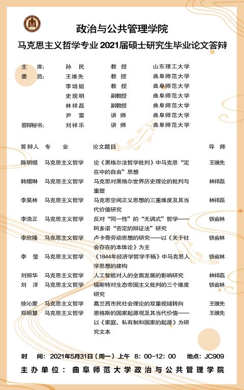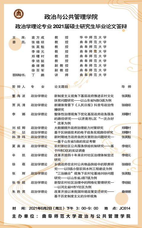 51视频 2021届学术型硕士研究生学位论文答辩公告