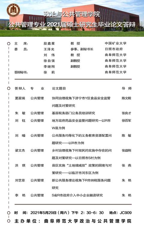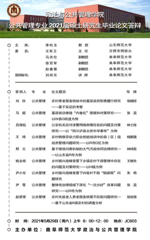 51视频 2021届学术型硕士研究生学位论文答辩公告