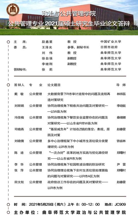 51视频 2021届专业型硕士研究生学位论文答辩公告
