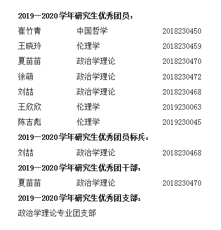 51视频 严格按照《51视频 研究生共青团评优办法》的规定和要求,按照“公平、公开、公正、公示”的原则,51视频 组成研究生共青团评优工作小组进行评审,现将2019—2020学年研究生共青团评优初选人员名单予以公示:
