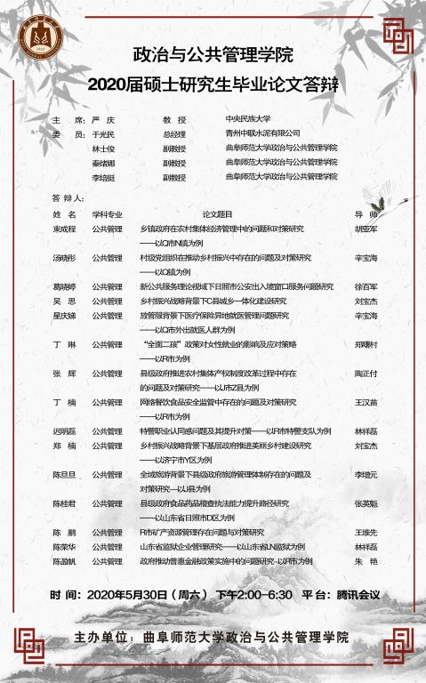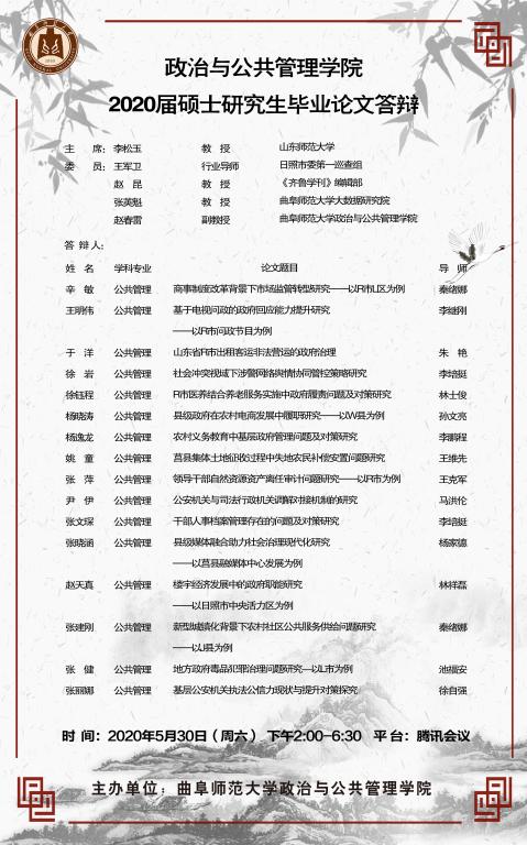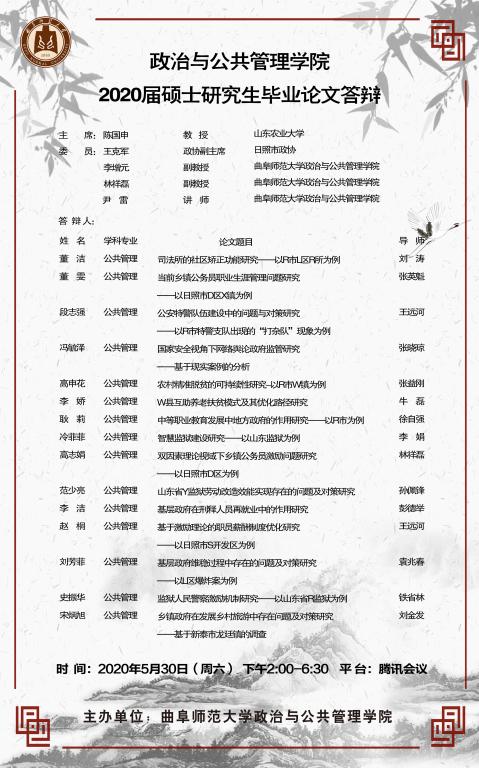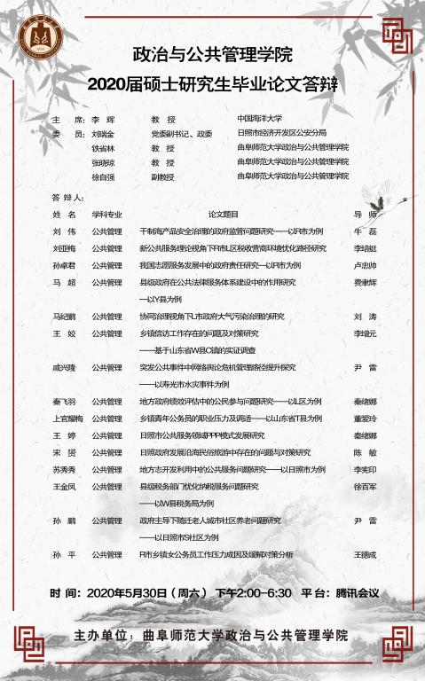 51视频 2020届学术型硕士研究生学位论文答辩公告