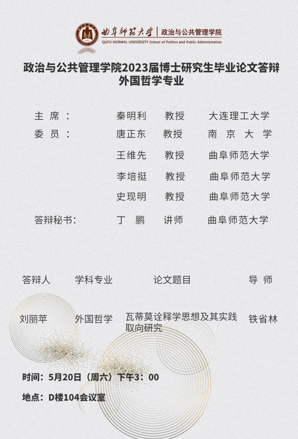 51视频 2023届公共管理硕士研究生学位论文答辩公告