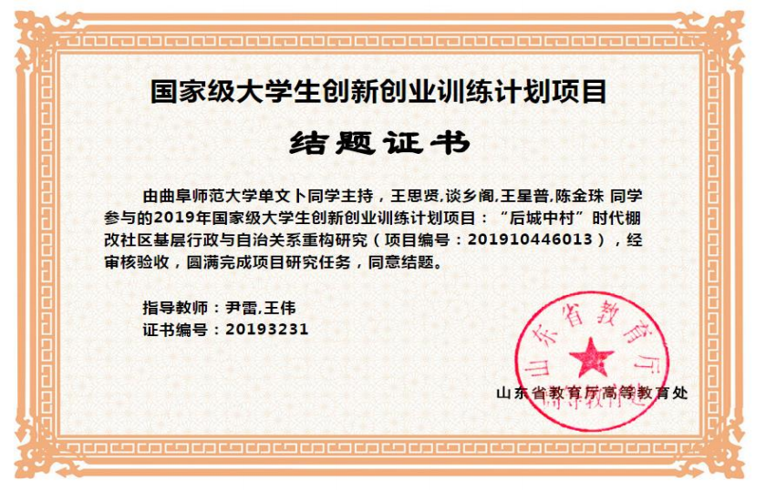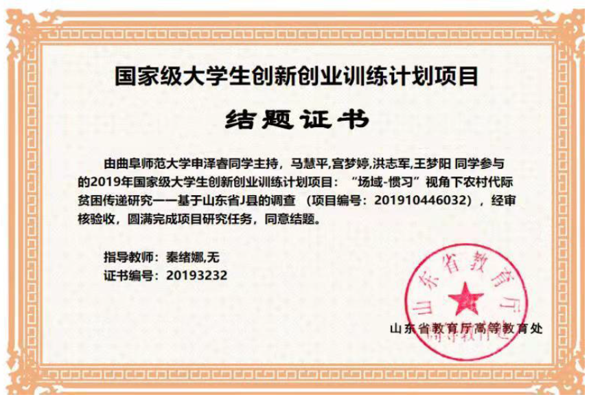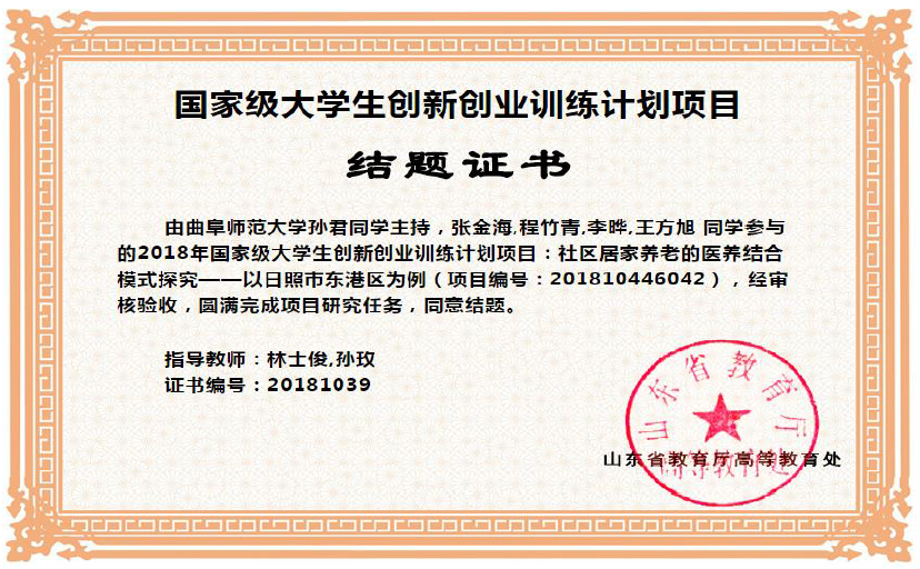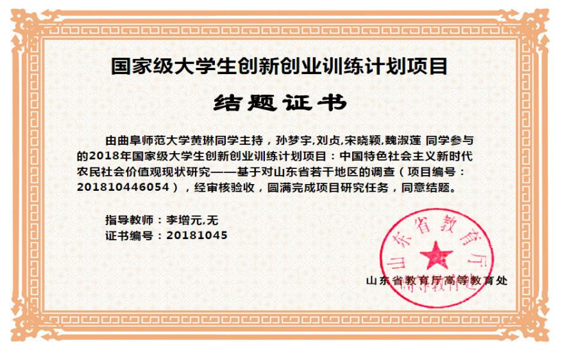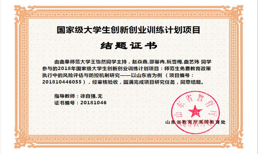 图2 学生的国家级大创项目结题证书