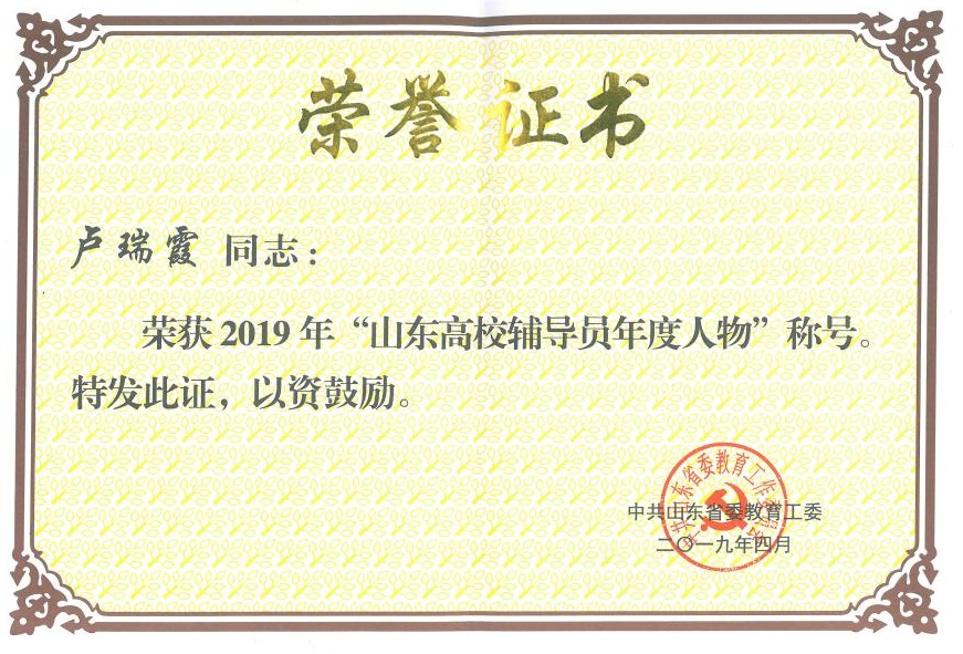 图3 泰山学者证书、山东省智库决策咨询专家聘书和山东高校辅导员年度人物证书
