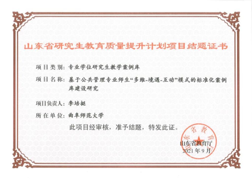 近3年来,获批省部级以上科研项目30多项,其中国家级项目8项;发表学术论文170余篇;被国家领导人采纳批示咨询报告3次、被省部级主要领导人采纳批示咨询报告近10次;出版学术著作12部。获得省社科优秀成果二等奖2项、三等奖1项。全国高校“模拟市长”全国总决赛一等奖、全国第三名,第十五届“挑战杯”全国三等奖、山东特等奖等奖项。
