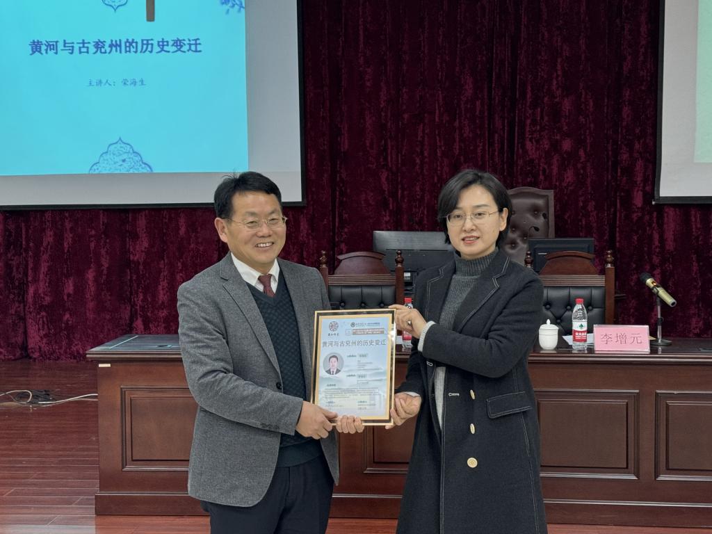 黄河是中华民族的母亲河,黄河文化是中华文明的重要组成部分。荣海生教授对历史追本溯源,从“黄河:中华民族的母亲河”、“兖州:厚重的文化符号”、“频繁迁徙的兖州”、“讲好黄河故事”四部分进行展开,详细地介绍了黄河文化的发展与传承,并着重解读了古九州之一——兖州的变迁史。他指出,黄河孕育了古老而伟大的中华文明,根植于黄河流域的黄河文化是中华文明中最具代表性、最具影响力的主体文化。保护传承和弘扬黄河文化,讲好“黄河故事”,推进黄河文化的研究,对于国家和民族的繁荣发展都具有重要的意义。