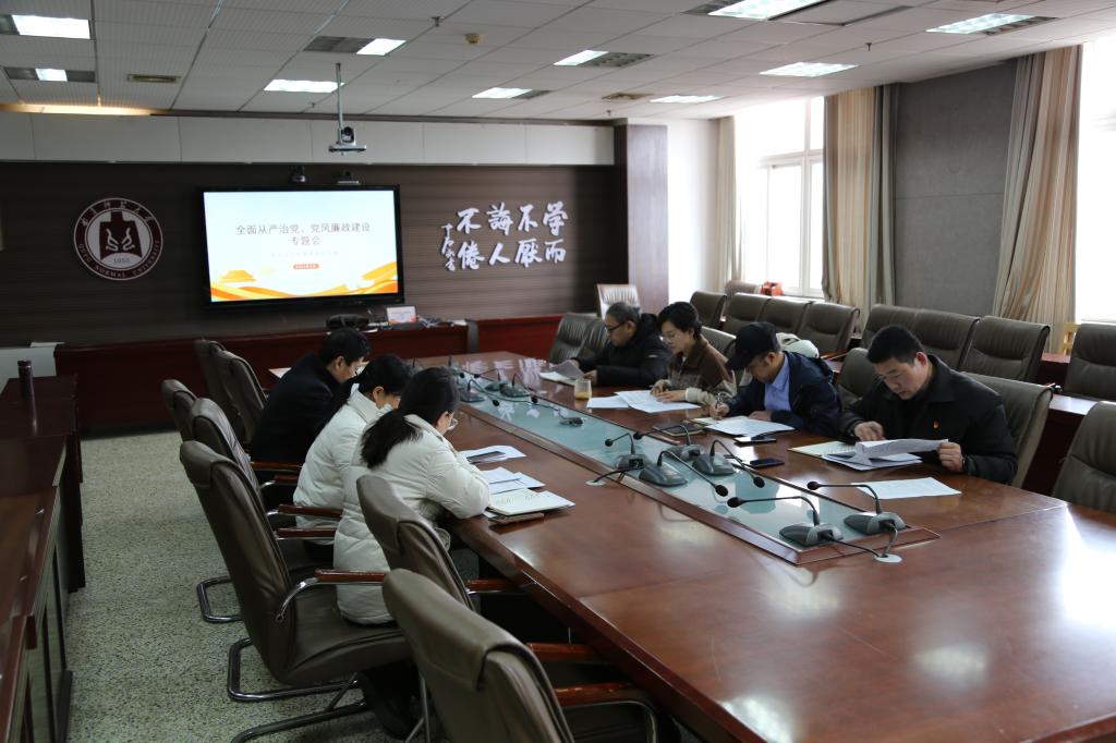 党委于JC909召开全面从严治党、党风廉政建设专题会。学院党委领导班子成员、各党支部书记参加会议。会议由学院党委书记卢瑞霞主持。