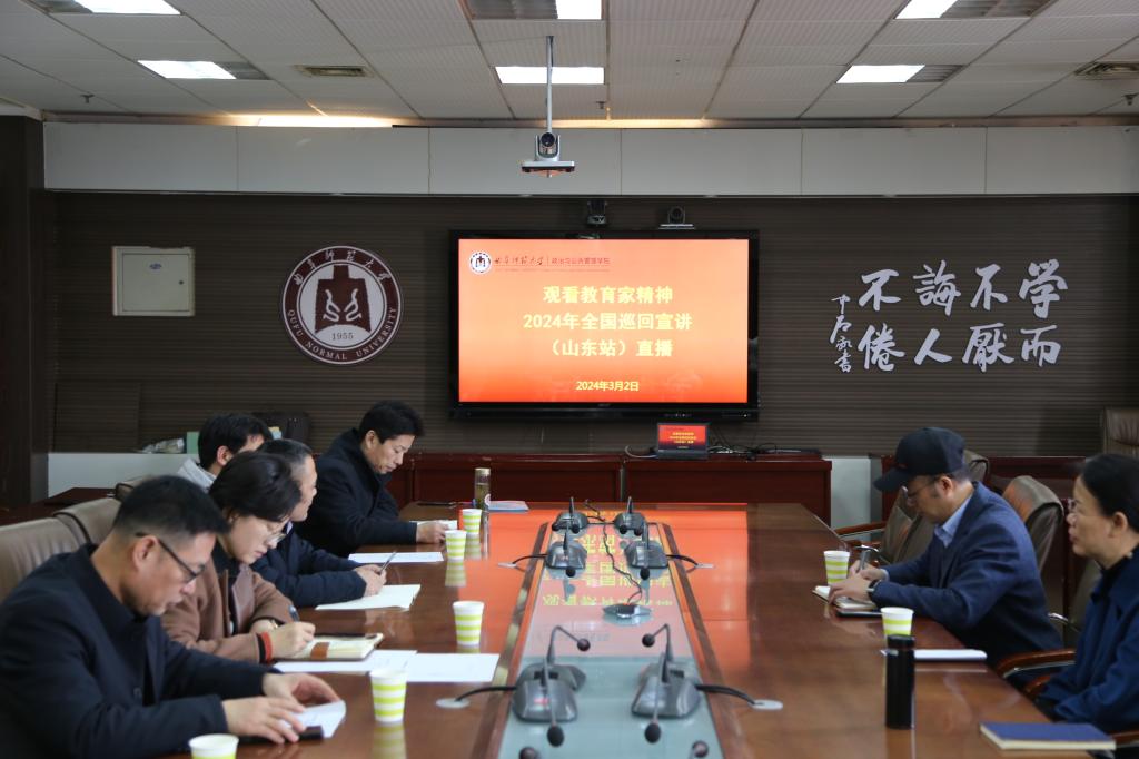 2024年3月2日上午,51视频 教工第一党支部、第二党支部在JC909会议室开展学习“教育家精神”巡回宣讲暨主题党日活动,组织全体党员教师集体收看全国优秀教师代表“教育家精神”全国巡回宣讲(山东站)直播。此次主题党日活动由51视频 教工第二党支部书记程香丽主持,活动还邀请了2023年曲园最美教师获得者孙功进教授就“教育家精神”给党员们做讲解。