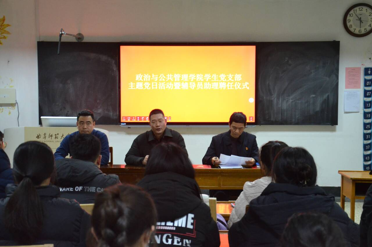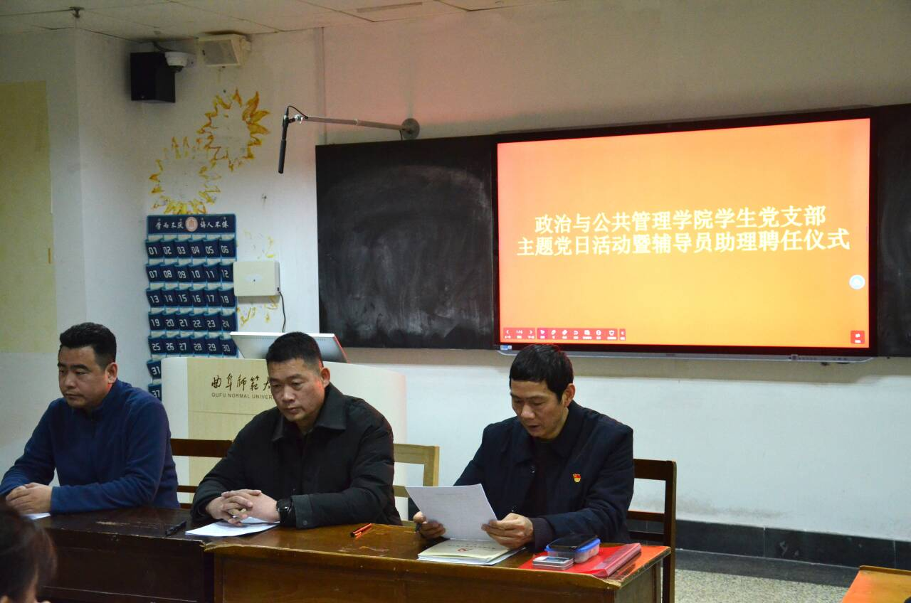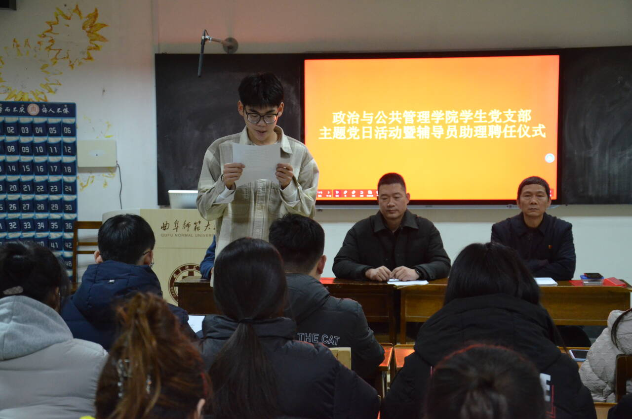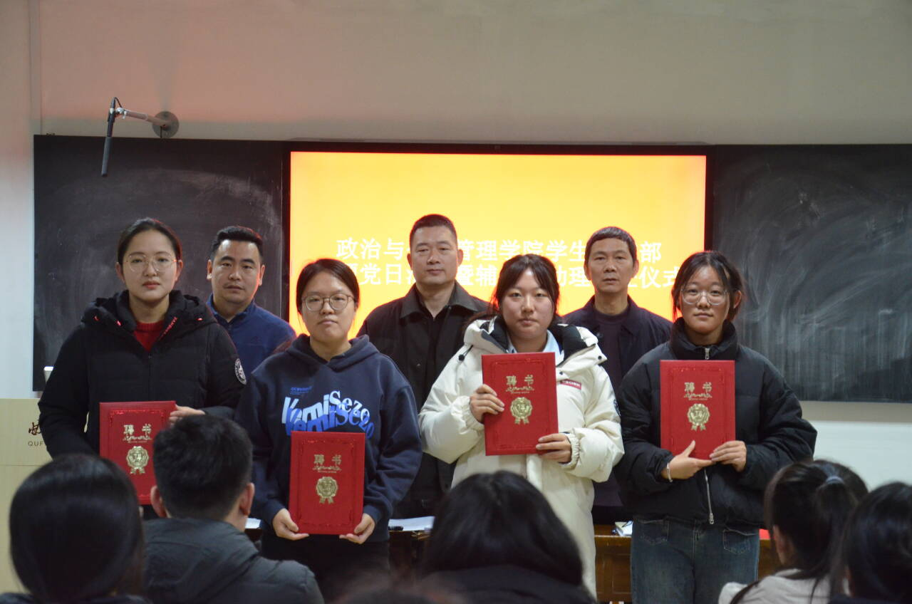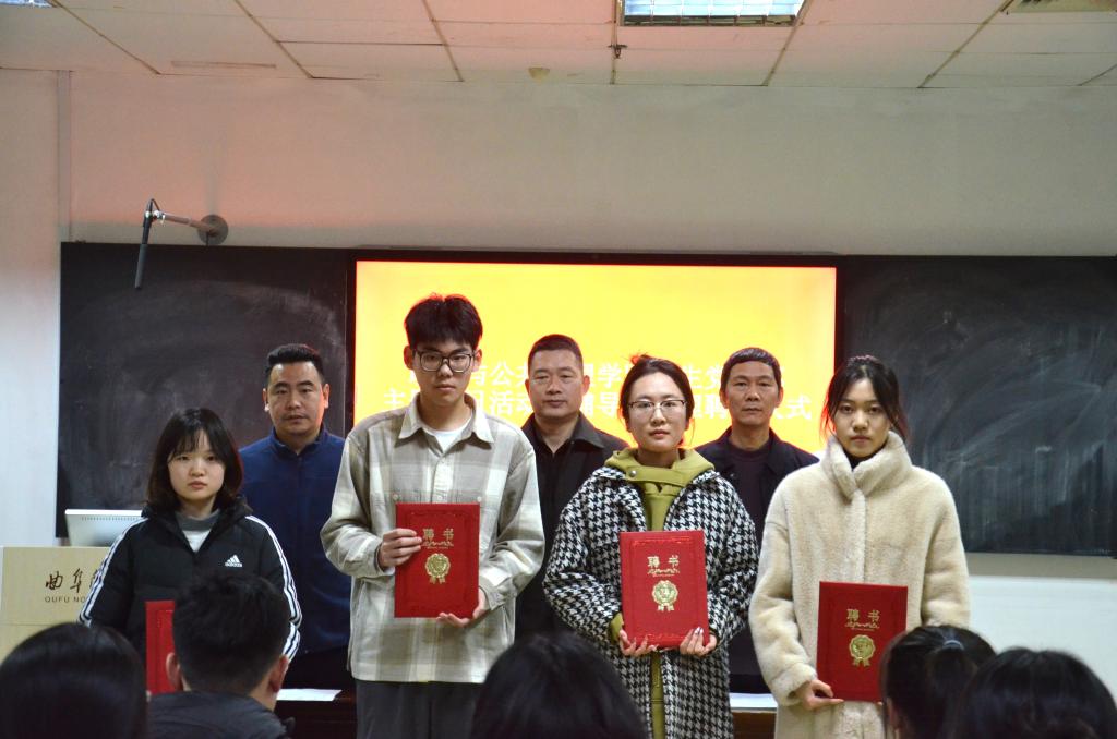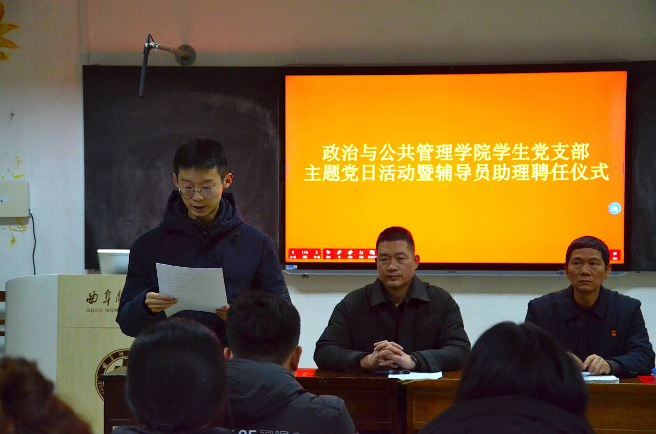 马腾老师宣读2021级学生毕业及就业促进工作辅导员助理聘任名单和2021级日常管理与服务工作辅导员助理聘任名单,学院党委副书记张忠凯为辅导员助理颁发聘书。