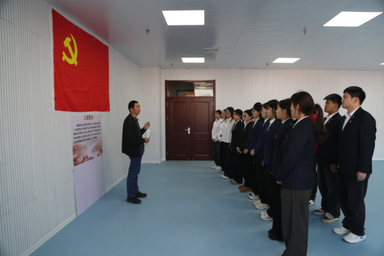 党委于JC907教室举行入党宣誓仪式,学院新发展的中共预备党员参加,学院党委组织员王元如老师出席仪式并讲话。