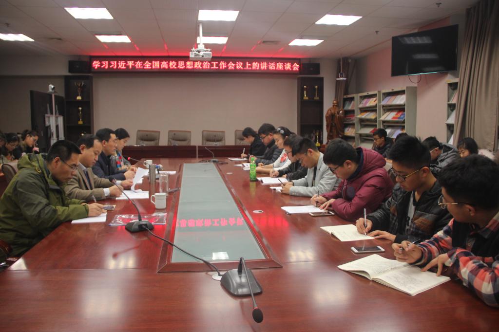 12月12日,我部学习习近平总书记在全国高校思想政治工作会议上的讲话座谈会于JC909召开,学部党委副书记刘进、团委书记陈敏、哲学系主任赵昆博士和董洪乐博士出席座谈会。
