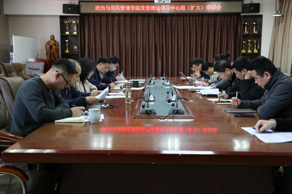 于JC909会议室召开党委理论学习中心组(扩大)学习会。本次会议由学院党委书记卢瑞霞主持,学院党委理论学习中心组成员、各党支部副书记参加学习。
