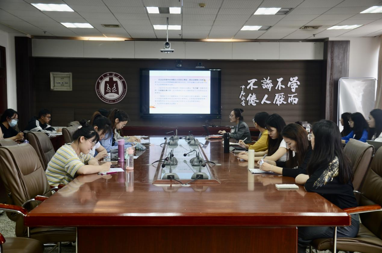 学生党支部书记耿晓敏在JC909讲授了题为《深刻认识习近平法治思想的人民性要义》的专题党课,学生党支部全体党员参加学习。
