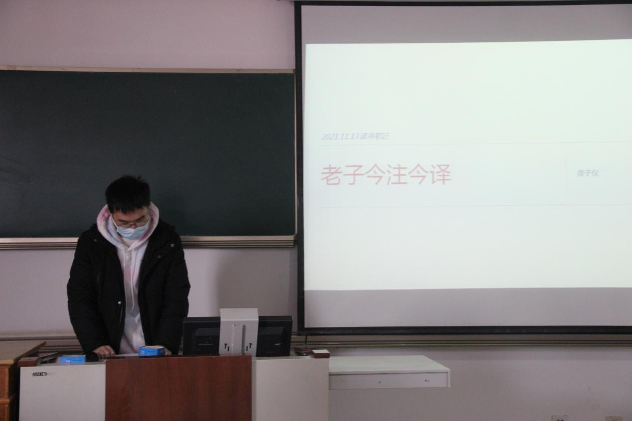 2021级龚子仪同学为大家分享陈鼓应的《老子今注今译》一书。作者在吸收前人研究成果的基础上,根据多年的研究心得,对《老子》一书展开全面介绍。本次分享主要探讨了老子“道”中“自然与无为”、“虚与静”以及“柔弱与不争”这三对范畴,着重阐释老子之“道”的三重含义,论述老子从军事理论中抽象出来的关于美恶荣辱等事物皆有对立面的普遍性原理。