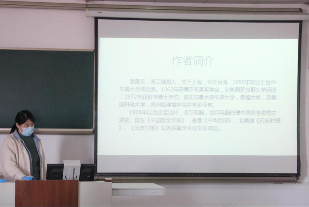 随后,2021级高亮同学分享了李泽厚的《中国古代思想史论》。本书主要介绍了先秦至明清的各种主要思潮、派别和代表人物。其中着重论证了中国的辩证法是“行动的”,而非“思辨的”,论说了秦汉时期所形成的具有有机反馈机制的“天人感应”宇宙观流传至今的原因,庄子、禅宗之哲学是对人生形而上美学的探究和追求,宋明理学作为道德形而上学的价值以及明清时期“内圣”和“治法”的分离趋势等内容。