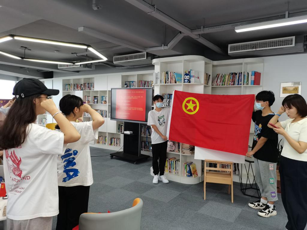随后,菅琳带领同学们重温入团誓词,更加坚定了同学们的爱国之心。接下来进行的沉浸式辛亥革命场景朗读,更是将每位同学带回那个年代,使同学们对因这场革命牺牲的英雄充满深深的敬意与缅怀。