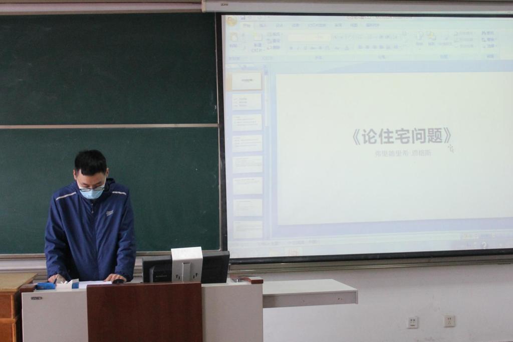 首先,2019级郑岩同学为大家分享恩格斯的著作《论住宅问题》。他从本书历史语境、基本内容、历史意义三部分展开讲解,指出恩格斯通过“住宅问题”,对巴黎公社革命经验进行补充说明,进一步阐明和发展了无产阶级革命和无产阶级专政理论,引导国际共产主义运动朝着科学社会主义方向前进。