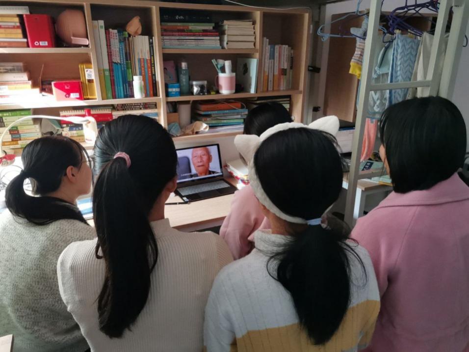 (注:19级哲学班于宿舍观看爱国主义影片)