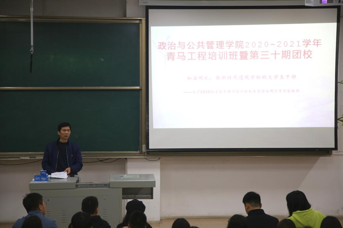 2020-2021学年“青马工程”培训班暨第三十期团校于JA302举行。本次培训由学院团委书记王元如主讲,学院团委学生会全体成员和各班班委参加培训.