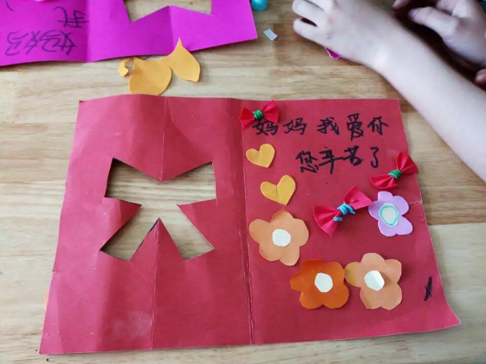 “来,小朋友,我们一起把纸这样折过来……”教室里,义工们手把手教孩子制作送给妈妈们的母亲节礼物。小心翼翼的对折,裁剪,粘贴……每一个步骤孩子们都用心在做。当一张张成型的贺卡做好后,孩子们兴奋地送到妈妈手中。
