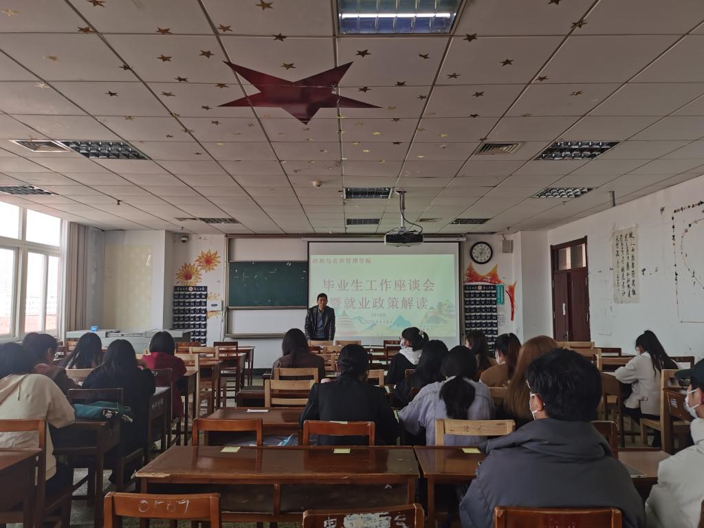 于2022年4月8日下午三点在C605举行2018级毕业生工作座谈会暨就业政策解读活动,宣传就业政策,分析就业形势。会议由18级辅导员王元如主持,18级应届毕业生积极与会。