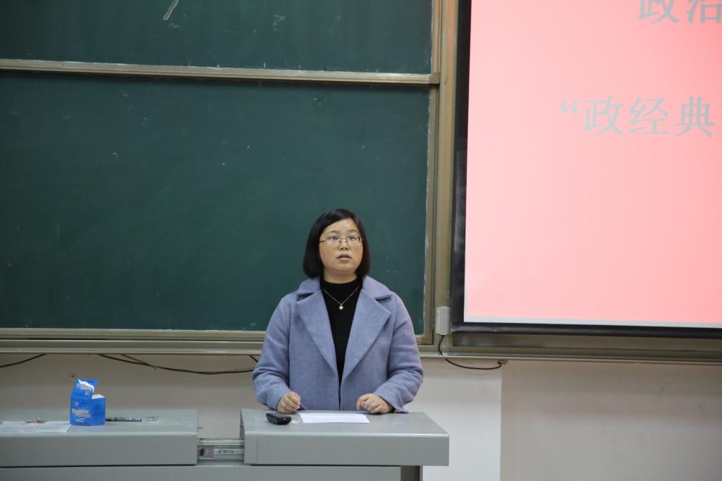 活动伊始,王元如为本次政经典”研读工程启动仪式致辞。王元如结合梁衡关于经典的三条标准,向与会同学介绍什么是经典,以及研读中国传统文化、马克思主义经典著作的意义。他指出,研读经典,是为了汲取经典的精华,以深厚的文化底蕴和科学的理论旗帜,向曲园学子输送知识营养,培养更多能写、会说、更会实践的优秀学子,学院各年级各班要认真贯彻王维先院长“让经典回到历史,归纳提炼经典基本内容和核心、挖掘经典当代价值”的研读方法,让本次“政经典”研读活动落到实处,让全体同学皆有所得。