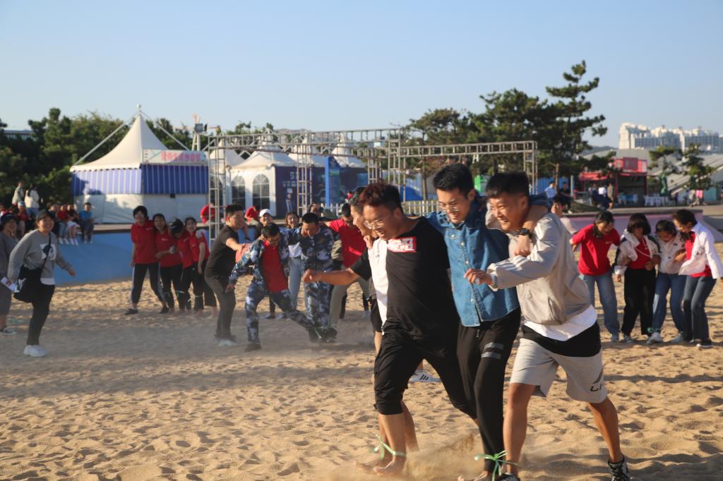 在四人三足比赛中,参赛选手四人一组,两两进行绑腿。比赛过程中,各组队员齐心协力,默契配合,获得场下阵阵喝彩。