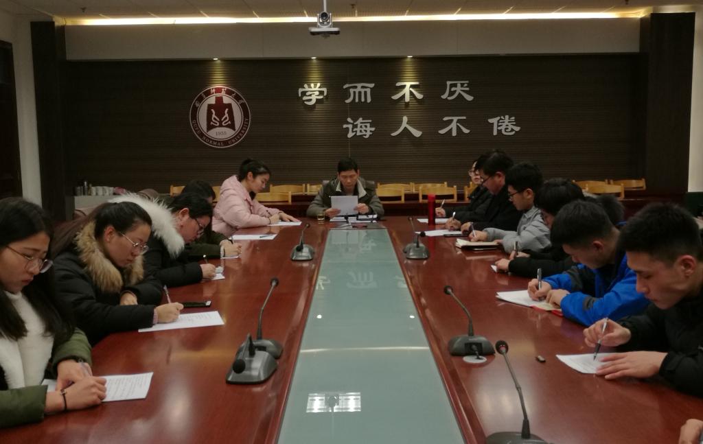 团委学生会社团联合会学生干部学习座谈会于JC909召开,会议由学院团委书记王元如主持,学院团委学生会社团联合会主席团、各部门部长与会。