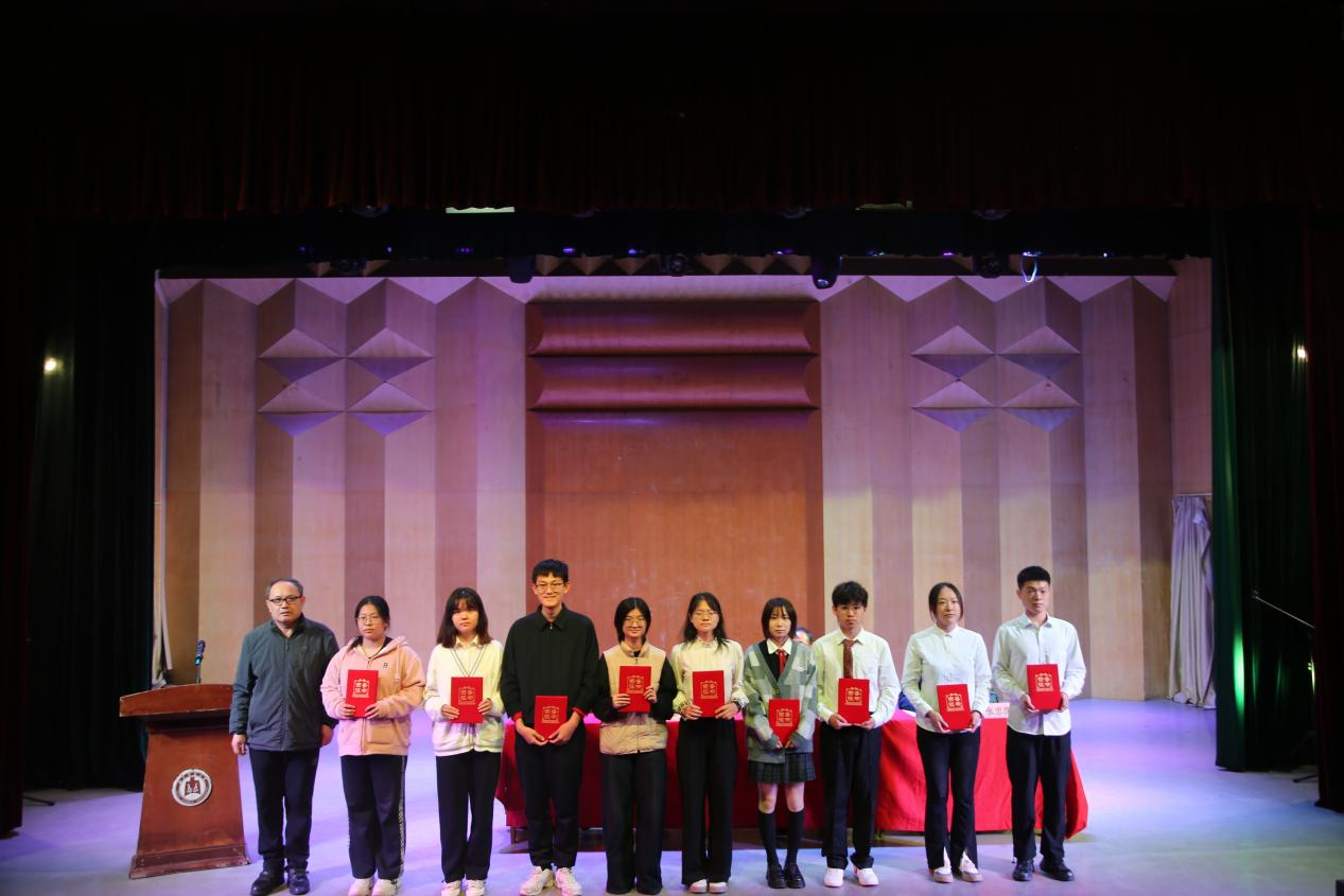 工作人员宣布《实习表彰决定》,副院长林士俊为到场的优秀实习生代表颁发荣誉证书。