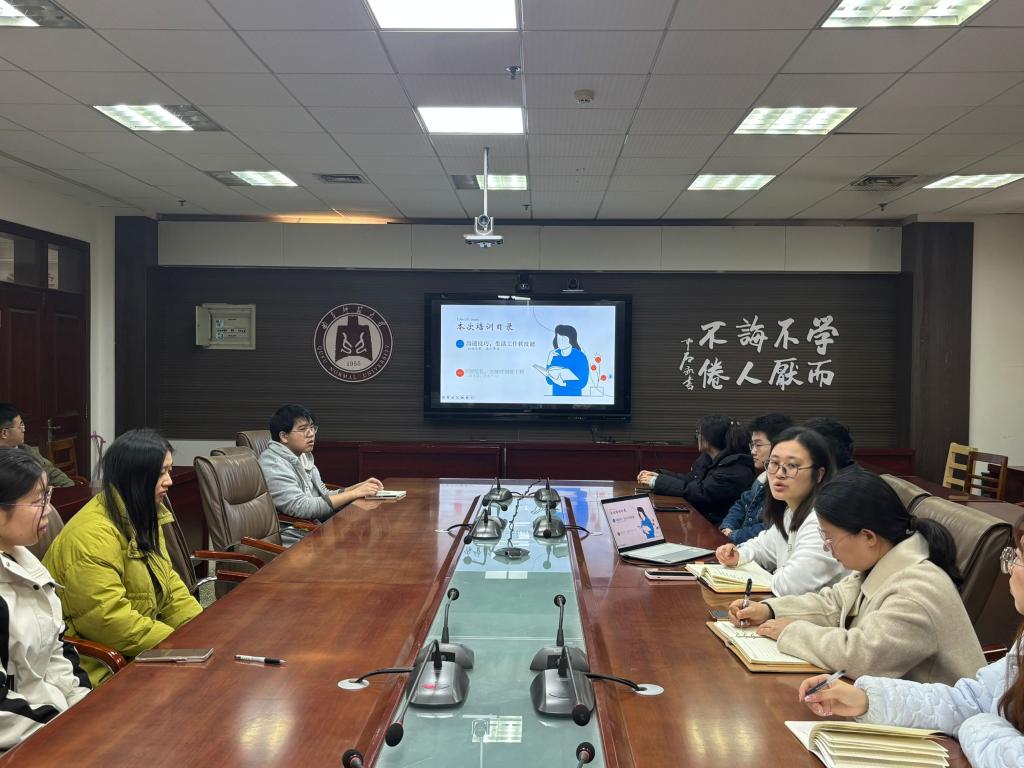 于C909举办了新学期心理健康骨干培训会。学院心理辅导员耿晓敏,研究生辅导员徐莉,研究生会、团委学生会心理部负责人,各班级心理委员参加培训。