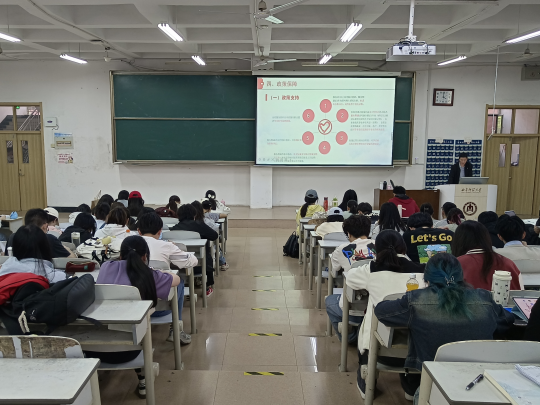 往届优秀毕业生志愿者基层实践为例,从项目介绍、实施内容、招募选拔、政策保障、发展优势五个方面展开深入讲解,有效加深了同学们对西部计划服务的认识与理解。王元如老师强调,在当前就业竞争压力大的环境下,同学们要提前做好职业规划,精准定位就业方向,同时鼓励同学们要勇敢追梦,将个人理想与国家发展紧密结合,用实际行动书写无悔青春。
