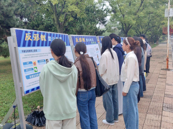 团委学生会组织学生干部前往校园反邪教警示教育展区,开展反邪教专题教育活动。