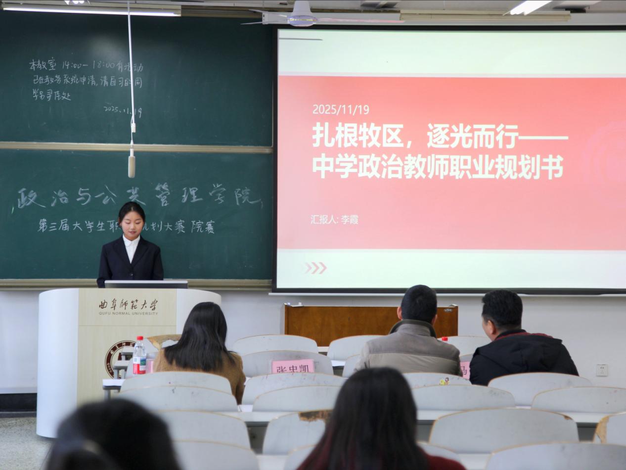 第三届大学生职业规划大赛院赛在 B103 教室顺利举办。学院党委副书记张忠凯、团委书记马腾、研究生辅导员徐莉受邀担任评委,为参赛学子提供专业指导。