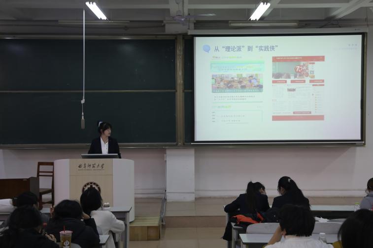 活动开始,主持人袁华丽点明社会实践是成长必修课,随后社会实践部成员孙佳详为同学们详细讲解寒暑假社会实践流程、申报条件等筹备核心内容;王星月同学介绍了青鸟计划的岗位资源与就业价值;薛佳慧同学讲解云支教活动的招募要求与志愿服务意义。互动答疑环节,同学们结合自身困惑踊跃提问,对应讲解成员逐一解答,现场交流氛围热烈融洽。活动尾声,社会实践部成员集体发出倡议,鼓励同学们主动走出校园、投身社会实践,在实践中充实大学生活、丰富人生阅历。精彩的分享赢得全场阵阵喝彩,本次小讲堂在热烈掌声中圆满落幕。